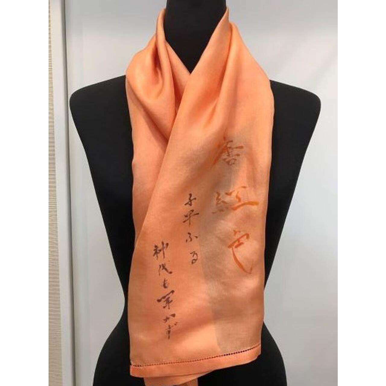 彬文ストール。6匁羽二重を使用した優しい肌触りのストールです。日本画家<佐々木彬文先生>が日本画の岩絵の具の色名と合わせてストールの色名をストールに直筆で描き、更にイメージされた文様をそれぞれに描き込んでます。世界に一枚のストールです!