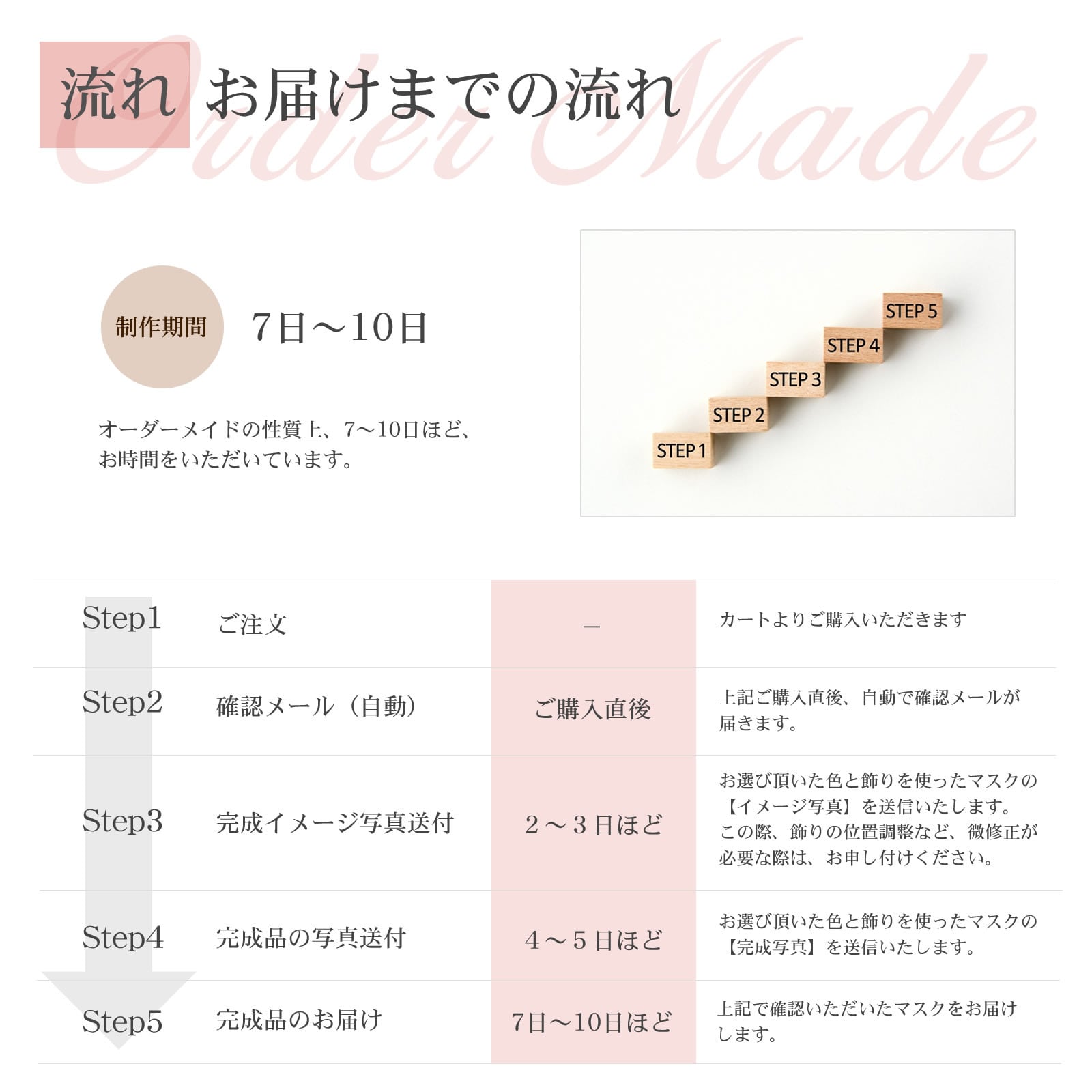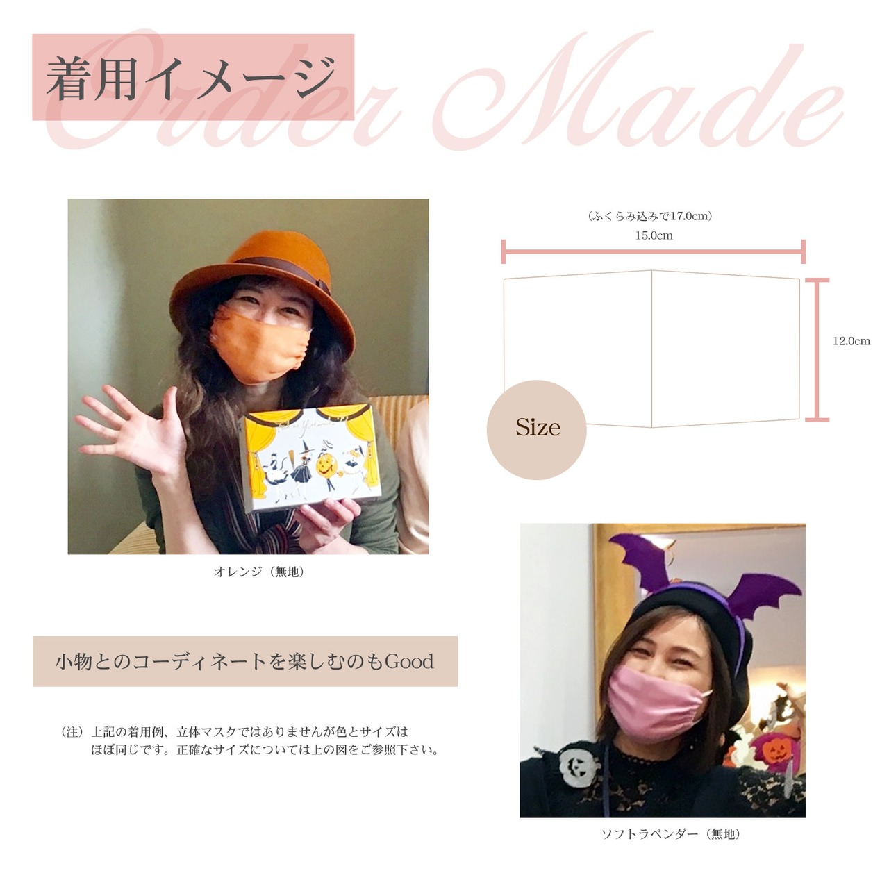 ホワイト 、ミモザイエロー 、ソフトラベンダー 、フェアリーピンク、 ブルーグレー、オレンジ